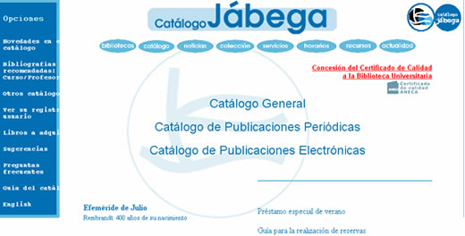 Vamos a utilizar el catálogo de la Biblioteca de la Universidad de Málaga. La dirección es: http://jabega.uma.es